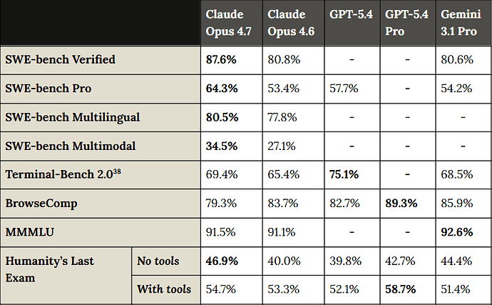 官方文:https://www.anthropic.com/news/claude-opus-4-7 官方文档:https://platform.claude.com/docs/en/about-claude/models/whats-new-claude-4-7 官方模型卡:https://cdn.sanity.io/files/4zrzovbb/website/037f06850df7fbe871e206dad004c3db5fd50340.pdf